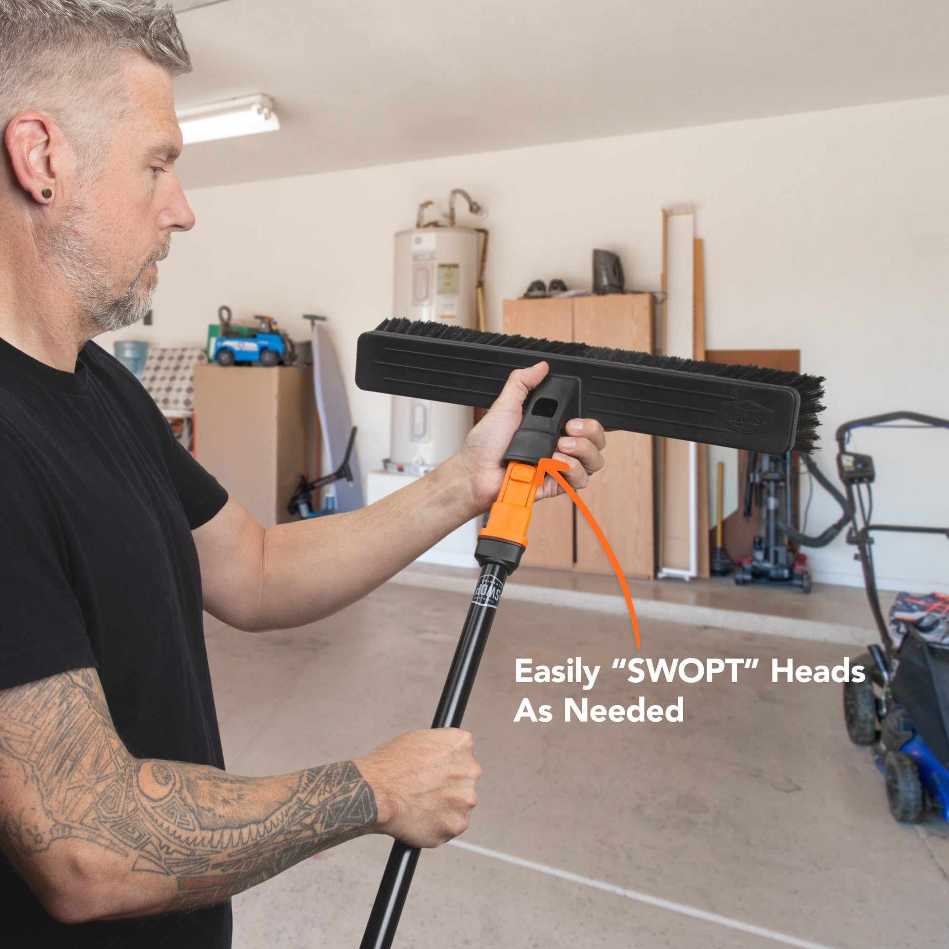 Combo includes 2 items. 24 in. Multi-Surface Push Broom Head - Multi-surface bristles feature a stiff inner core for moving large debris and a soft border for picking up finer particles.
