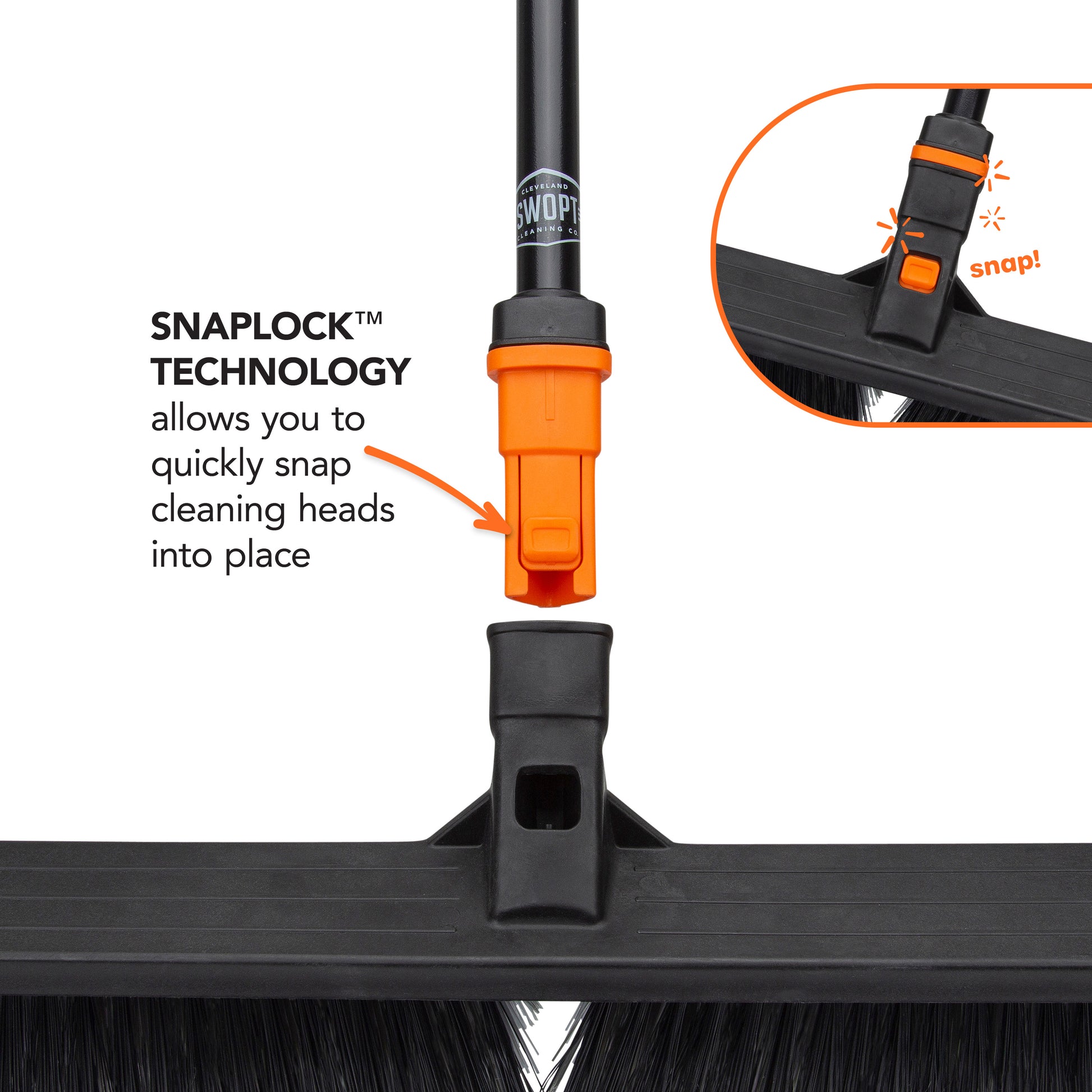 60 in. Steel Handle - Ideal for cleaning in front of you, the handle’s unique design prevents it from twisting loose. All steel handles feature a swivel hanger for convenient, flat-laying storage.
