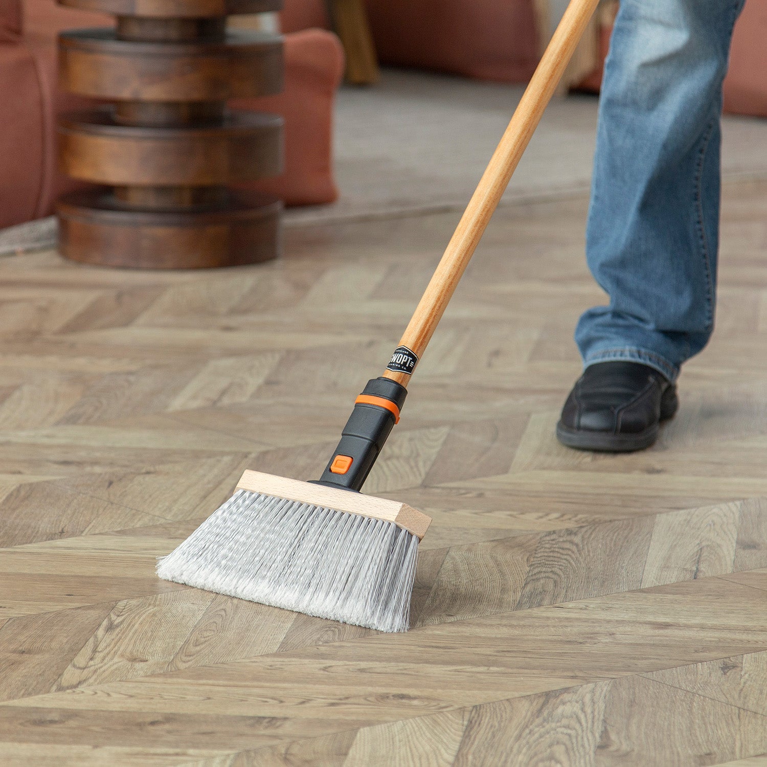 Effortlessly sweep away dirt, crumbs, pet hair, and other debris with SWOPT brooms. Our brooms are unlike any other broom you've used before. Part of our interchangeable cleaning system that allows you to "swopt" heads and handles at the push of a button, you can take the bore out of the chore. With a simple snap, lock and clean and you'll have your home looking pristine in no time.