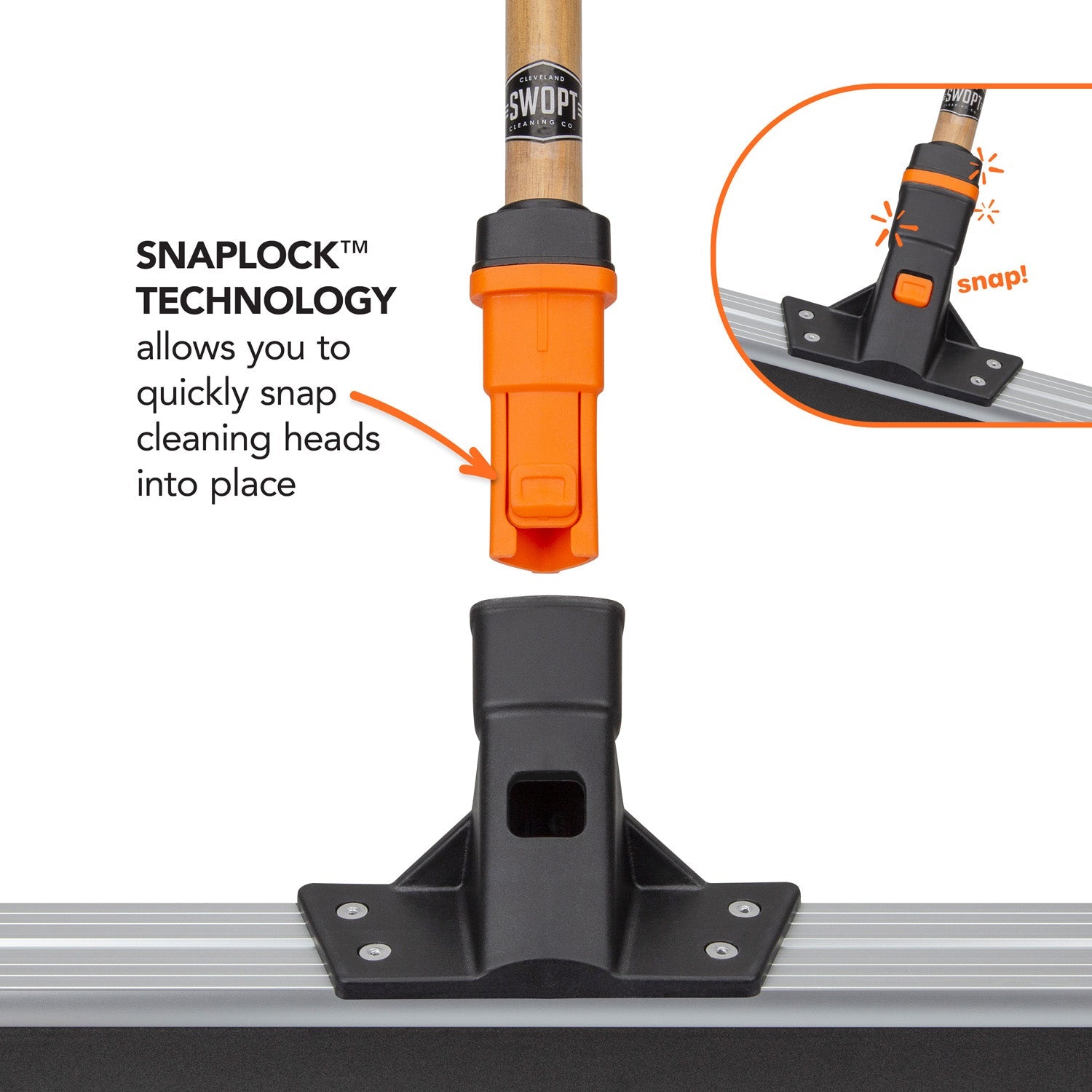 60 in. Steel Handle - Ideal for cleaning in front of you, the handle’s unique design prevents it from twisting loose. All steel handles feature a swivel hanger for convenient, flat-laying storage.