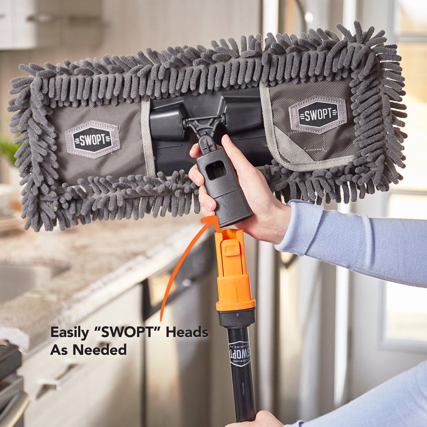 SWOPT cleaning kits are your ultimate solution for a sparkling clean home, garage, or outdoor space. Experience the future of cleaning with our patented Snaplock Technology that makes it super simple to "swopt" a head or handle with a push of a button. Our kits offer an array of cleaning handles, tools and attachments that are designed to make your cleaning routine more efficient and cost-effective - whether you're sweeping, mopping, or dusting. With a SWOPT kit, you get to enjoy a cleaning system that is functional, versatile, space-saving, and aesthetic for all your cleaning needs from floor to ceiling.