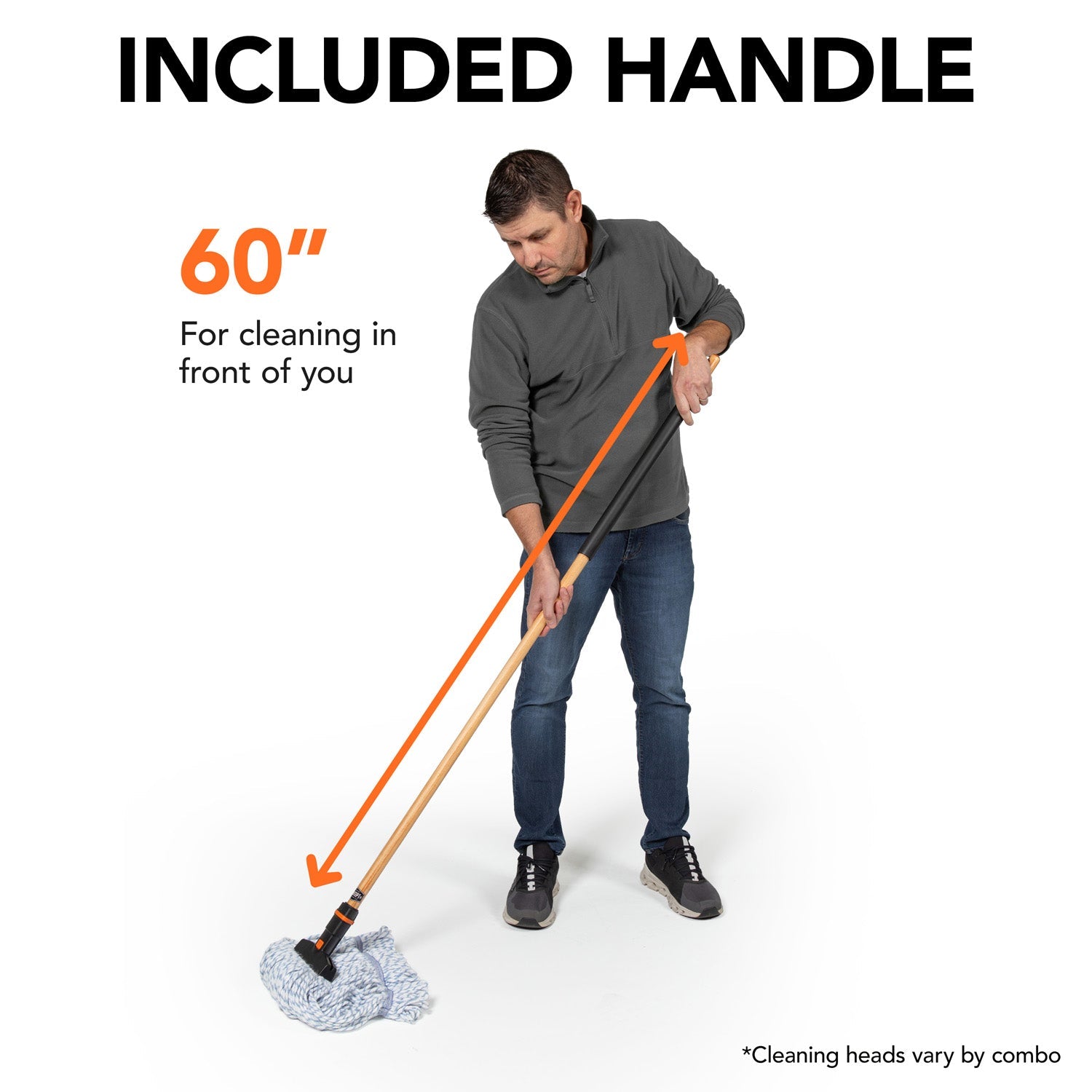 Combo includes 2 items. Premium Microfiber Mop Head - Designed to easily detach from our handles with a push of a button, our mop heads are machine washable and reusable so you never have to touch a dirty one again.