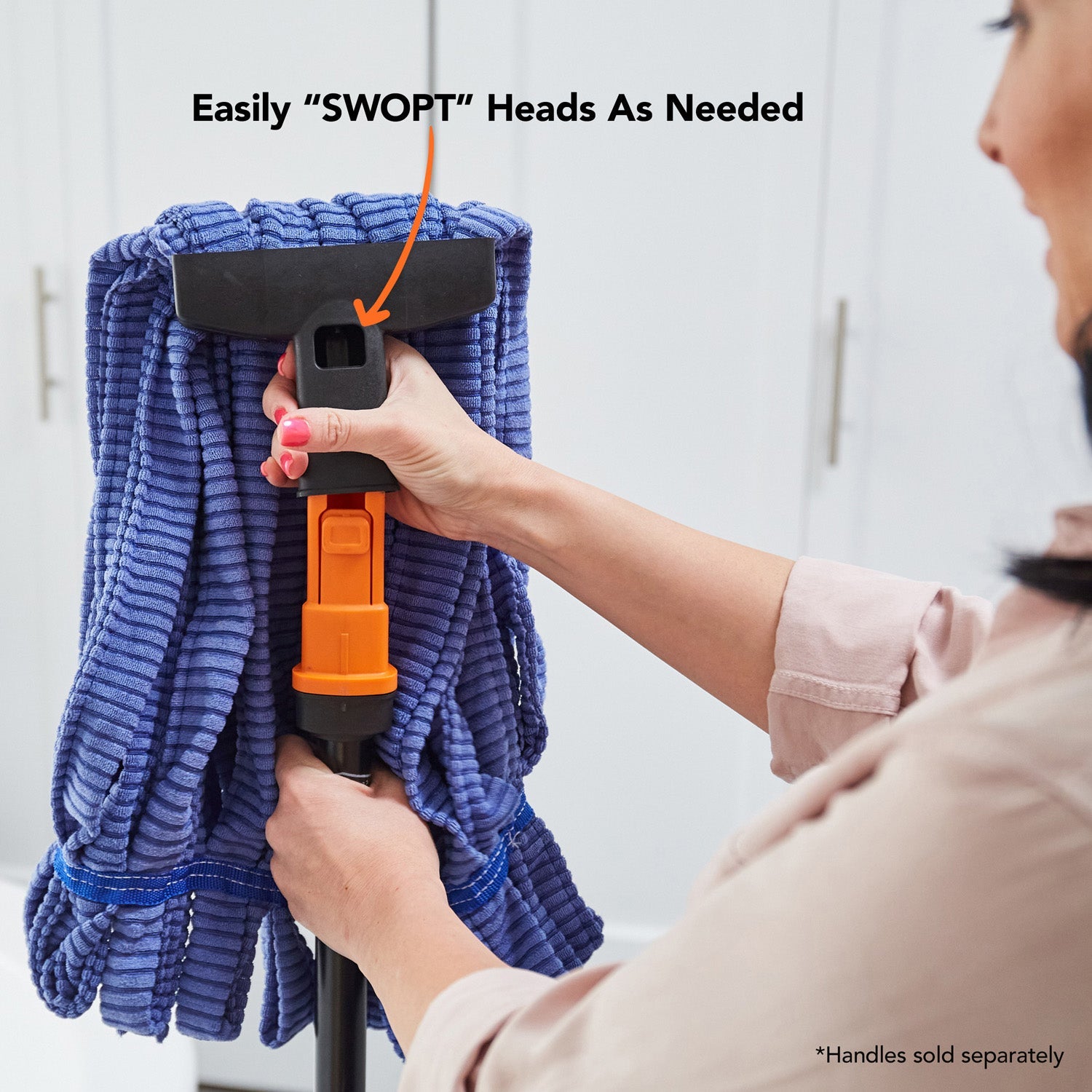 SWOPT mop heads are super absorbent and effortlessly clear away spills, dirt, and other wet messes. Make your floors shine with a mop head that doesn't scratch your hardwood or tile! Compatible with any of our handles thanks to our patented Snaplock Technology, our mops are made with high-quality materials and are designed to be washed and re-used for a more sustainable cleaning experience.