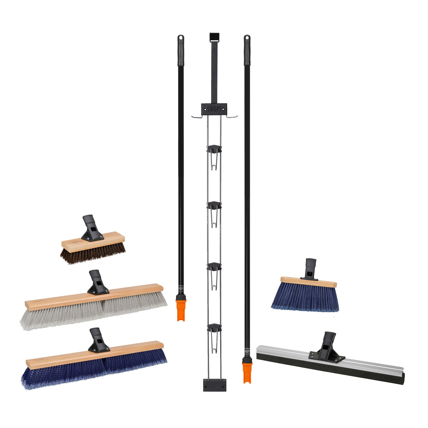 The SWOPT™ Garage Cleaning Kit with System Organizer is part of the SWOPT™ Cleaning’s interchangeable cleaning system and is great for indoor and outdoor cleaning applications.